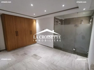 La Croisette Immobilière Tunisie vous propose à la location un duplex S+2 avec terrasse occupant le troisième étage d'une résidence gardée à Gammarth.